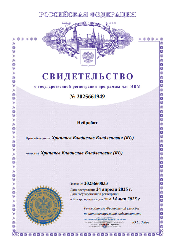 Номер регистрации в реестре программного обеспечения РФ: 2025661949