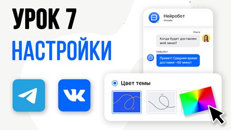 Как подключать нейроботов к Telegram-ботам и сообществам Вконтакте (VK), какие есть настройки для чата на сайте и страницы бота (AI-лендинга), как настроить автоматическую передачу диалога оператору в нужный момент.