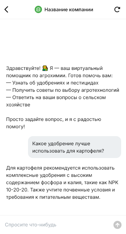 Агрохимия продаётся правильно когда бот уточняет культуру и проблему и помогает не навредить посадкам