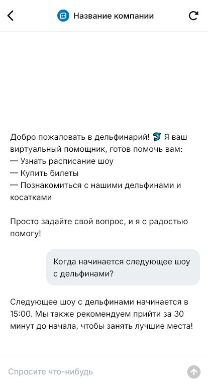 Дельфинарий получает вопросы о расписании шоу, стоимости билетов, свободных местах, правилах посещения, льготах, групповых заявках, фотосессиях и дополнительных программах. Посетители часто планируют выходной в последний момент и хотят быстро понять, успеют ли они на ближайшее представление и как купить билеты без очереди. Если ответы приходят медленно, люди выбирают другое развлечение, а касса получает нагрузку в пиковые часы.