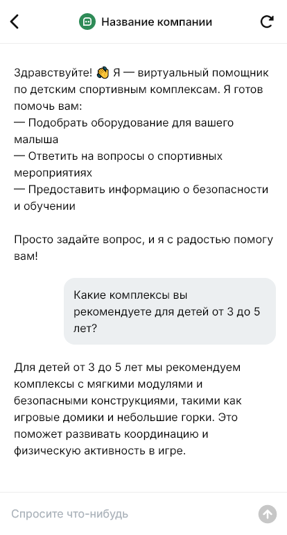 Детские спортивные комплексы выбирают с заботой о безопасности и удобстве. Родители спрашивают про возраст, допустимую нагрузку, крепление к стене или потолку, размеры комнаты, высоту потолков, комплектацию, материалы и гарантию. Часто нужно быстро понять, какой вариант подойдёт именно под их помещение, а переписка без структуры превращается в десятки сообщений и сомнения, после которых покупка откладывается.