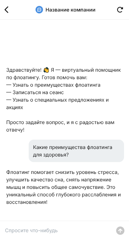 Флоатинг продаётся лучше когда бот снимает тревожность и объясняет как проходит сеанс
