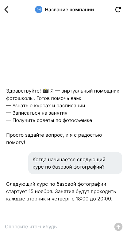 Фотошколы получают обращения: какой курс выбрать, что нужно для старта, есть ли занятия для новичков, сколько стоит обучение, когда набор и какие преподаватели. Если отвечать с задержкой, человек выбирает другую школу. Бот для фотошколы автоматизирует первичную консультацию и доводит интерес до заявки.