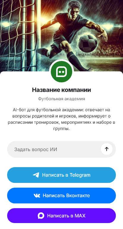 Футбольная академия живёт на дисциплине и регулярности, но стартовый этап часто хаотичный: родители пишут в разные каналы, задают вопросы про набор, расписание, стоимость, форму, медсправки, турниры и условия для новичков. Если администратор не успевает отвечать всем одинаково подробно, часть заявок теряется, а родители выбирают академию, где процесс записи проще.
