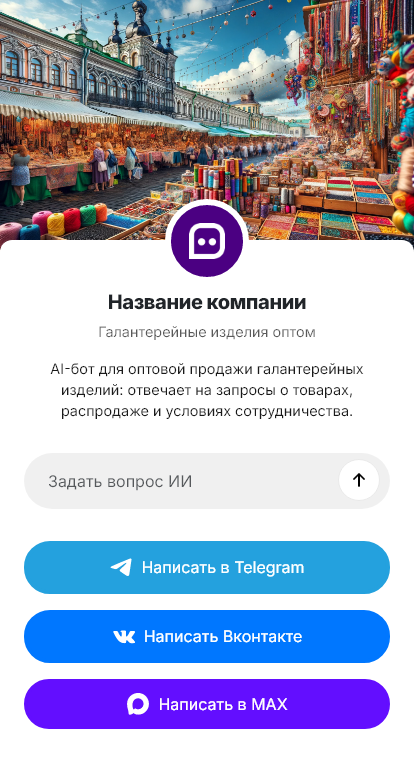 Галантерейные изделия оптом часто закупают магазины и маркетплейсы: сумки, ремни, аксессуары, фурнитура и сопутствующие товары. Важно быстро отвечать по наличию, ценам, минимальным партиям и доставке. Бот для оптовой галантереи автоматизирует первичный сбор данных и формирование заявки.