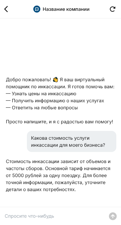 Бот помогает структурировать первичное обращение. Он уточняет тип бизнеса, количество точек, адреса и часы работы, примерные объёмы, частоту инкассации, предпочтительные окна, требования по сопровождению и контакт ответственного лица. После этого бот формирует заявку на расчёт и договор, отправляет подтверждение и может предложить созвон с менеджером. Клиент чувствует порядок и контроль, а компания получает вводные, достаточные для подготовки коммерческого предложения.