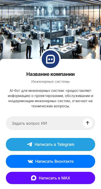 В итоге инженерные системы проектируются, внедряются и обслуживаются более предсказуемо. Бот работает в Telegram, VK, MAX и на сайте, повышает качество входящих заявок, ускоряет расчёты и помогает компании довести клиента от первого обращения до стабильной эксплуатации.