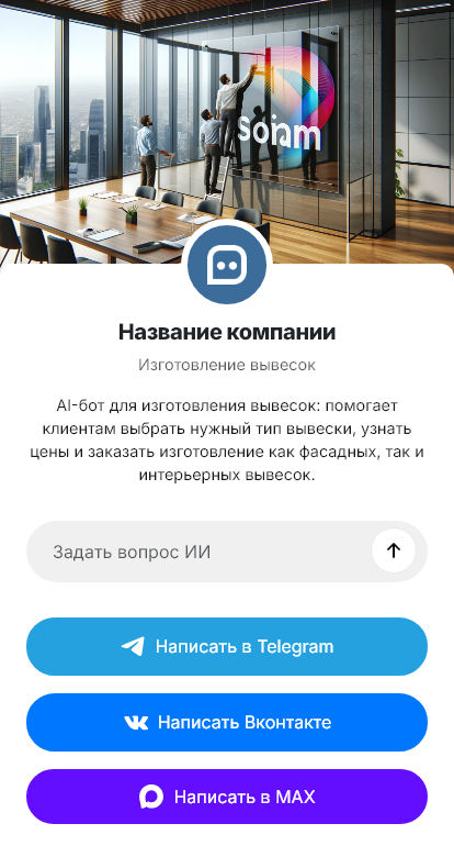 Вывески заказывают быстрее когда бот уточняет размеры и материалы и сразу оформляет расчёт