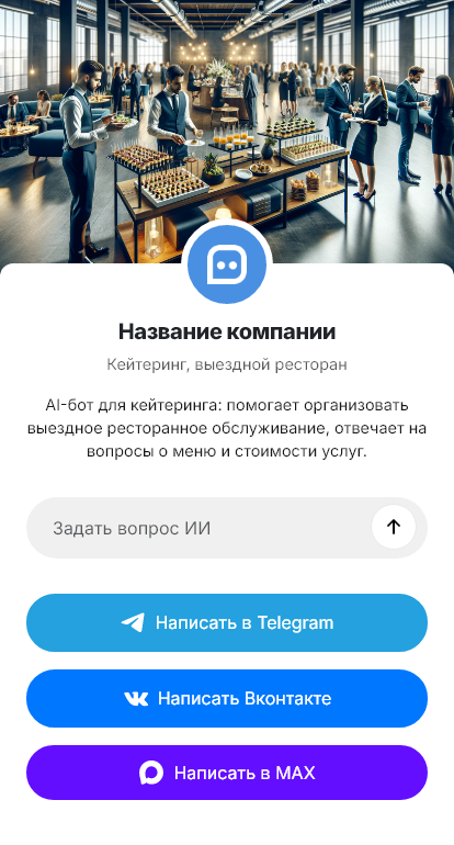 Внедрение настраивается под процессы компании: пакеты меню, сезонные предложения, минимальные суммы заказа, логистика и тайминги выездов, правила предоплаты и договоров, работа с юрлицами, интеграция с CRM. Бот помогает объяснить, из чего складывается стоимость, и сразу собирать те данные, без которых невозможно подготовить смету.