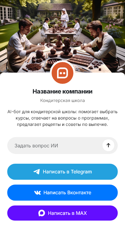 Бот для кондитерской школы помогает быстро определить уровень и подобрать программу. Он уточняет опыт, цель, интересующее направление (торты, муссы, шоколад, выпечка, декор), формат (очно/онлайн), сроки, удобные даты и контактные данные. Бот может показать программы, объяснить, что входит в стоимость, какие инструменты и ингредиенты понадобятся, и предложить запись на ближайший поток или мастер-класс.