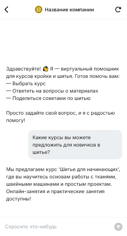 Бот для курсов шитья помогает быстро подобрать программу. Он уточняет опыт (с нуля/есть база), цель (научиться шить, сделать первую вещь, освоить конструирование, поднять уровень), интерес (одежда, бельё, аксессуары), формат (группа/индивидуально), удобные даты и время. Бот может предложить пробное занятие, показать программу по модулям и выдать чек-лист подготовки: какие инструменты понадобятся и что входит в стоимость.