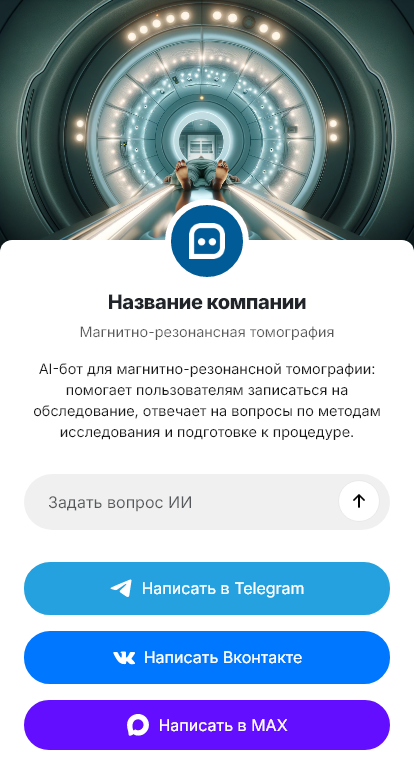 В итоге уменьшается количество ошибок и потерянных обращений, а пациенты получают быстрый и понятный сервис. Бот работает в Telegram, VK, MAX и на сайте, превращая вопросы о МРТ в подтверждённую запись.