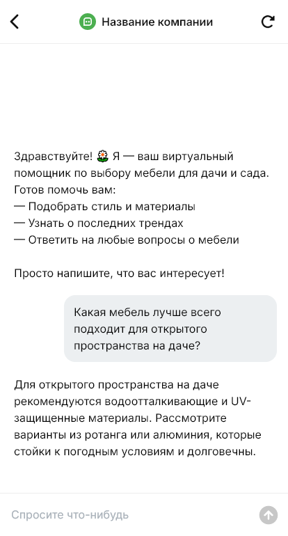 Мебель для дачи и сада часто покупают срочно: начался сезон, приехали гости, нужно быстро обустроить террасу, беседку или участок. Клиенты спрашивают про устойчивость к дождю и солнцу, материалы, уход, хранение зимой, размеры, доставку, сборку и наличие. В сезон поток сообщений увеличивается, и если продавец отвечает с задержкой, человек просто заказывает у конкурента, потому что ждать некогда.