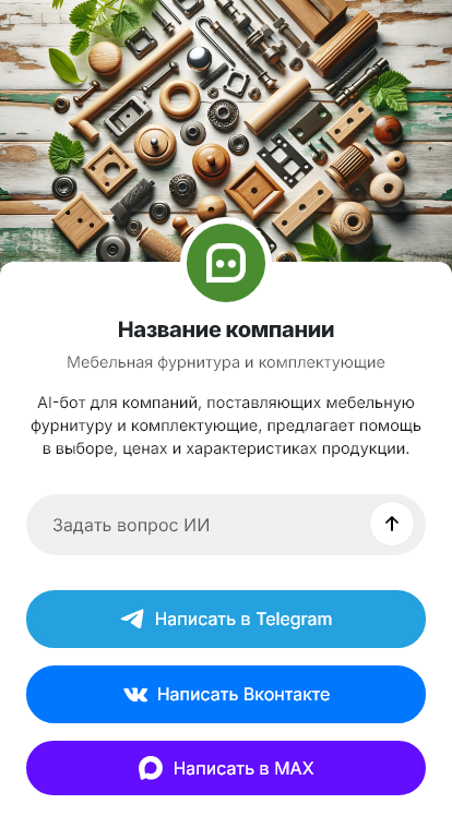 Фурнитуру и комплектующие часто ищут срочно: петли, направляющие, ручки, крепёж, подъёмные механизмы. Клиенты спрашивают совместимость, размеры, аналоги, наличие и сроки поставки. Если отвечать долго, заказ уходит к конкурентам. Бот для мебельной фурнитуры помогает автоматизировать первичную консультацию и сбор заявки.