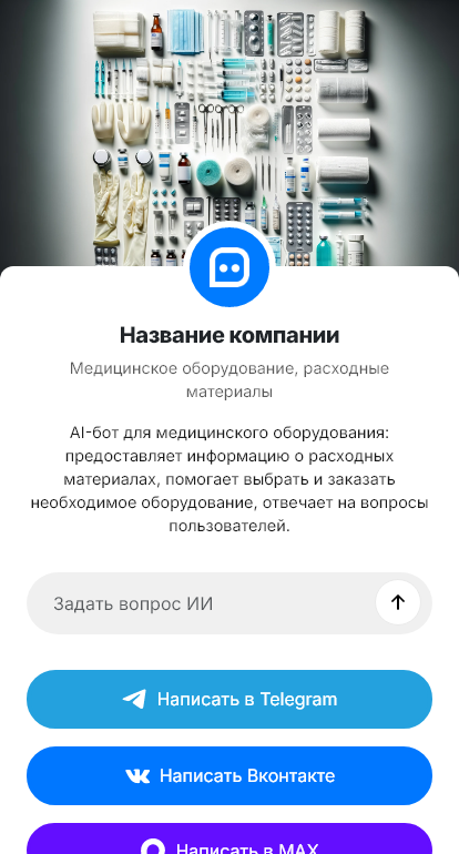 В итоге продажи медтехники становятся более управляемыми, а клиент быстрее получает расчёт и предложение. Бот работает в Telegram, VK, MAX и на сайте, превращая запросы о наличии в оформленные заявки и сделки.