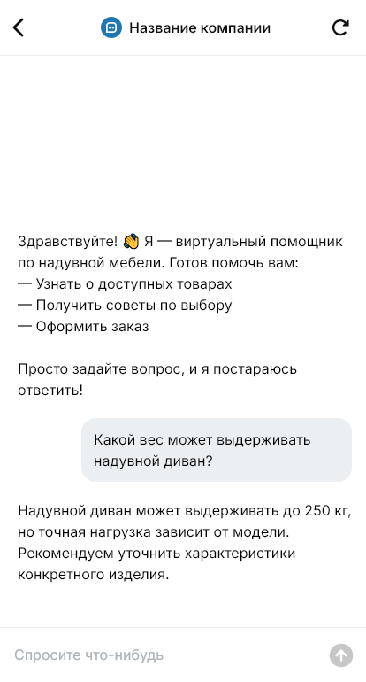Надувную мебель покупают быстро, и бот помогает не потерять покупателя в момент решения