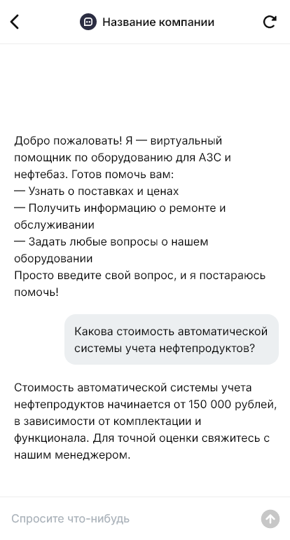 Оборудование для АЗС и нефтебаз продаётся быстрее, когда бот собирает параметры объекта и комплектацию