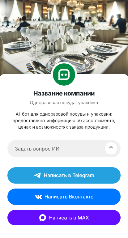 Одноразовую посуду и упаковку закупают быстрее когда бот собирает заказ по параметрам и сразу даёт расчёт