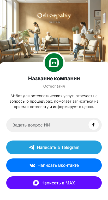 В итоге остеопатия получает больше подтверждённых записей и меньше потерь на первичном контакте. Бот работает в Telegram, VK, MAX и на сайте, превращая вопросы о приёме в реальные визиты.
