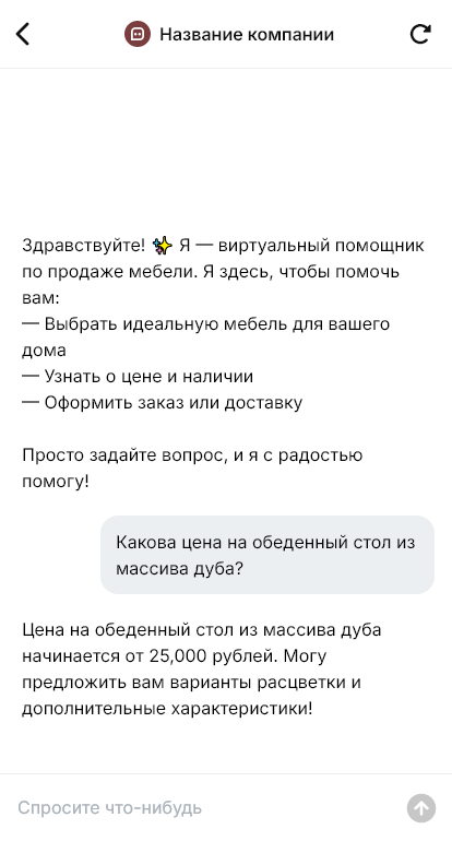 В продаже мебели и комплектующих много «технических» вопросов: какие размеры, какая фурнитура подходит, совместимы ли направляющие, какой механизм выдержит нагрузку, есть ли нужный цвет или партия, как быстро доставят. Клиенты часто пишут с фото или артикулом и хотят получить ответ быстро, иначе покупают у другого продавца. Ручная обработка таких запросов занимает время, а ошибки приводят к возвратам и недовольству.