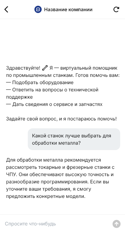 Промышленные станки — дорогостоящая покупка, где важны точные вводные: операции, точность, габариты, материалы, серийность, автоматизация, ЧПУ, условия цеха и сервис. Клиенты часто обращаются без полной спецификации и хотят понять ориентир по бюджету и срокам. Если продавец не умеет быстро структурировать запрос, решение откладывается, а клиент уходит к конкуренту.