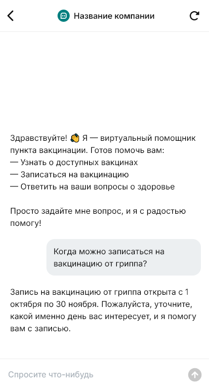 Пункты вакцинации получают много обращений по расписанию и правилам посещения. Люди спрашивают, когда можно прийти, нужна ли запись, какие документы взять, как подготовиться, можно ли перенести визит и где находится пункт. В часы пик персонал занят на месте, а ответы в мессенджерах приходят с задержкой. Из‑за этого часть желающих не доходит до посещения, хотя готовность была высокая.