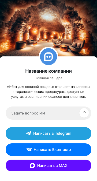 В итоге соляная пещера получает больше подтверждённых записей и меньше потерь на переписке. Бот работает в Telegram, VK, MAX и на сайте, превращая вопросы о сеансах в бронирования.