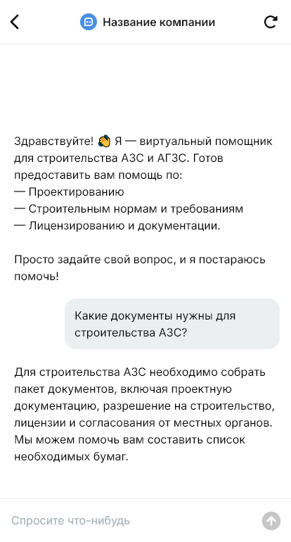 Строительство АЗС и АГЗС — проекты с высокой ответственностью: безопасность, инженерия, оборудование, сроки, согласования и документация. Заказчики часто приходят с общим запросом «нужна станция под ключ», но для расчёта требуется много вводных: участок, концепция, количество колонок, резервуары, оборудование, сопутствующая инфраструктура. Бот для строительства АЗС и АГЗС помогает квалифицировать обращение, собрать исходные данные и передать их специалистам, чтобы быстрее подготовить КП и график.