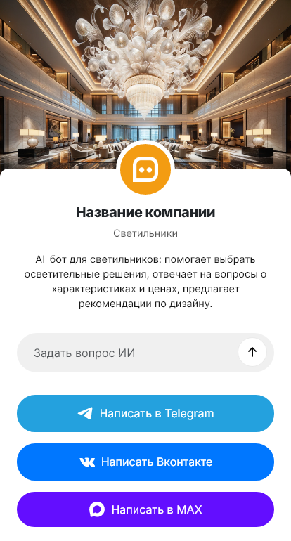 Бот работает в Telegram, ВК, MAX и на сайте 24/7, повышая скорость ответа и конверсию обращений по светильникам в реальные продажи.