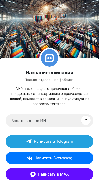 Бот для ткацко-отделочной фабрики помогает собирать технические запросы как на входе в производство. Он уточняет назначение ткани, ключевые параметры, тип отделки и требования, объём, регулярность поставок, сроки, географию, просит прикрепить ТЗ или спецификацию. После этого бот формирует структурированную заявку и передаёт её ответственному менеджеру или технологу.