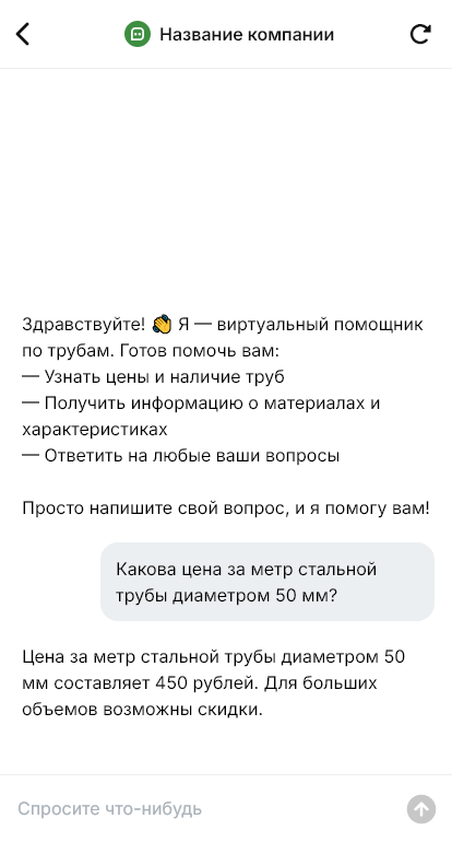 Когда клиент ищет «трубы», он может иметь в виду разные решения: пластиковые для воды и отопления, канализационные, стальные для строительства и промышленности, гофру для дренажа, трубы для наружных сетей. На первом контакте важно быстро уточнить задачу и параметры, иначе переписка превращается в бесконечные вопросы и часть заявок теряется. Бот для продажи труб помогает автоматизировать первичную консультацию, классифицировать запрос и довести его до оформленного заказа.