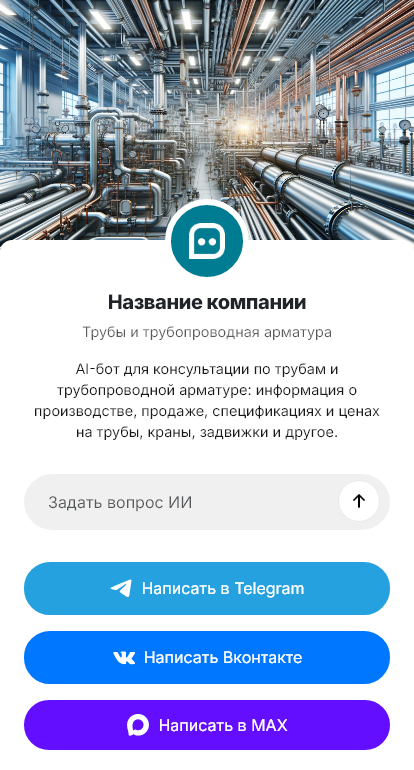 В итоге трубы и арматура продаются и поставляются эффективнее. Бот работает в Telegram, VK, MAX и на сайте, превращает общий запрос в точное техническое задание, ускоряет обработку и повышает конверсию обращений в заказы.