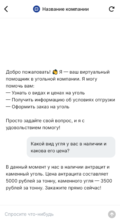 Бот для угольной с отгрузкой помогает организовать процесс ещё до приезда транспорта. Он уточняет марку и фракцию угля, объём, форму оплаты, реквизиты, контакт ответственного, желаемую дату и время, тип транспорта и допустимую массу, а также информацию для пропуска. Бот может собрать данные водителя и автомобиля, чтобы база заранее подготовила документы и отгрузку.