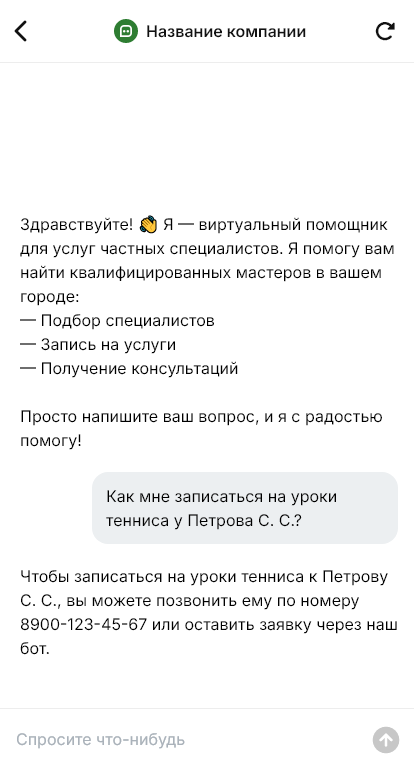 Частные специалисты получают больше заказов когда бот быстро выясняет задачу и назначает удобное время без переписок