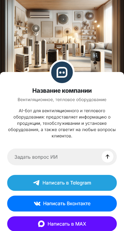 Внедрение настраивается под вашу компанию: категории оборудования, бренды, варианты монтажа, прайс, интеграция с CRM и календарём выездов. Бот может предлагать диагностику, формировать заявку на расчёт, отправлять клиенту чек-лист измерений и объяснять этапы: обследование → подбор → смета → монтаж → пусконаладка → сервис.