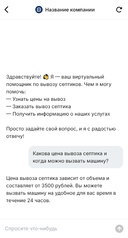 Вывоз септика заказывают быстрее когда бот уточняет объём и подъезд и сразу подтверждает возможность откачки