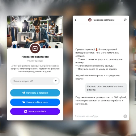 Отраслевые чат-боты с ИИ (AI) в категории: "Ателье по пошиву и ремонту одежды"