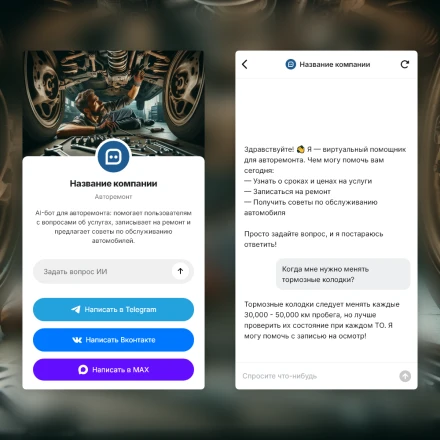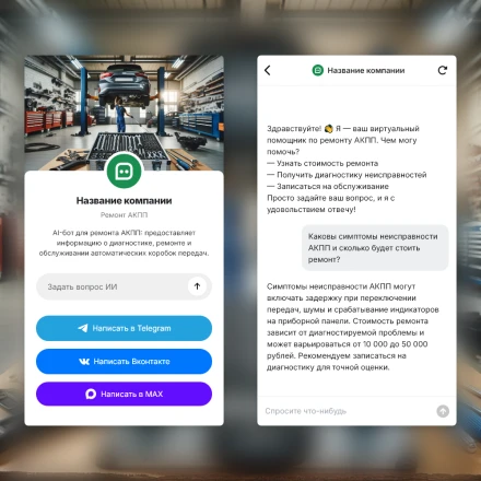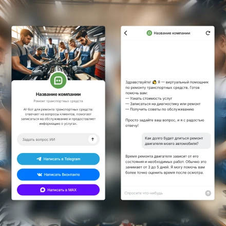 Отраслевые чат-боты с ИИ (AI) в категории: "Автосервисы, ремонт транспортных средств"