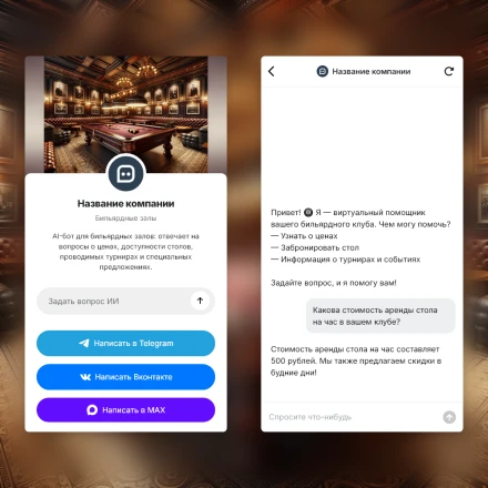 Отраслевые чат-боты с ИИ (AI) в категории: "Бильярдные залы"