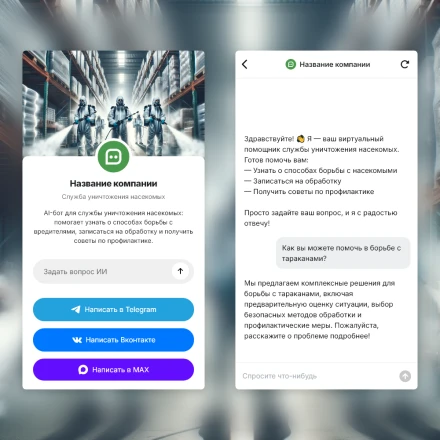 Отраслевые чат-боты с ИИ (AI) в категории: "Дeзинфекция, дeзинсекция, дератизация"