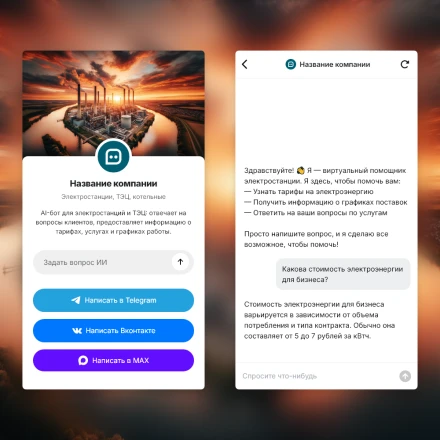 Отраслевые чат-боты с ИИ (AI) в категории: "Электростанции, ТЭЦ, котельные"