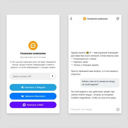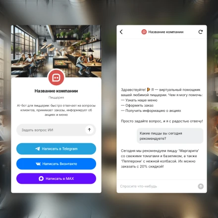 Отраслевые чат-боты с ИИ (AI) в категории: "Фастфуды, кафе и рестораны быстрого питания"