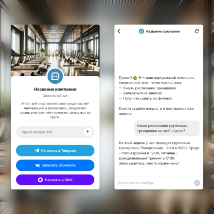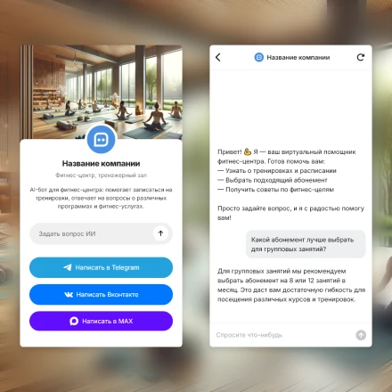 Отраслевые чат-боты с ИИ (AI) в категории: "Фитнес-центры, тренажерные залы, йога"