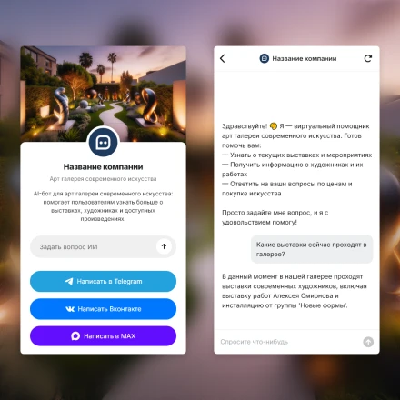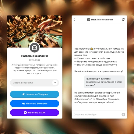 Отраслевые чат-боты с ИИ (AI) в категории: "Художественные выставки, галереи"