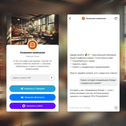 Отраслевые чат-боты с ИИ (AI) в категории: "Кафе, ресторан"