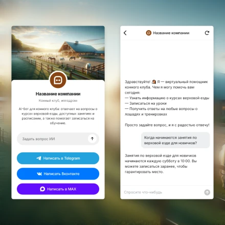 Отраслевые чат-боты с ИИ (AI) в категории: "Конный клуб, ипподром"