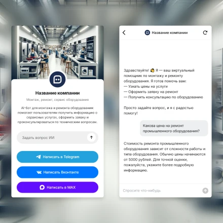 Отраслевые чат-боты с ИИ (AI) в категории: "Монтаж, ремонт и сервис оборудования"