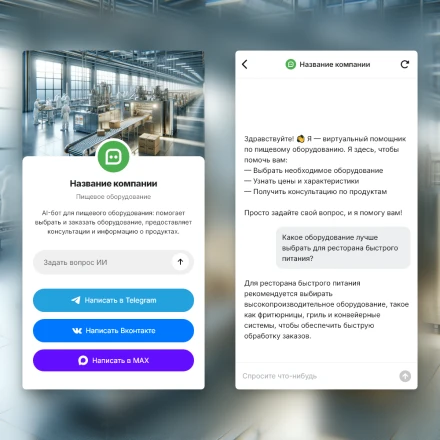 Отраслевые чат-боты с ИИ (AI) в категории: "Оборудование для предприятий общественного питания"