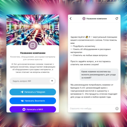 Отраслевые чат-боты с ИИ (AI) в категории: "Оборудование и расходные материалы для салонов красоты"