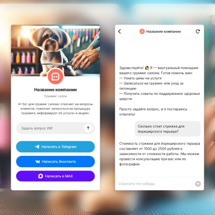 Отраслевые чат-боты с ИИ (AI) в категории: "Питомники, клубы, гостиницы, приюты для животных"